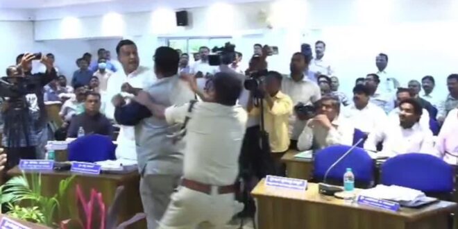 ಬೀದರ್ ಜಿಲ್ಲಾ ಪಂಚಾಯತ್ ಸಭಾಂಗಣದಲ್ಲಿ ಉಸ್ತುವಾರಿ ಸಚಿವ ಈಶ್ವರ ಖಂಡ್ರೆ ಅವರ ನೇತೃತ್ವದಲ್ಲಿ ಕೆಡಿಪಿ ಸಭೆ ನಡೆಯುತ್ತಿತ್ತು. ಈ ವೇಳೆ, ಸಭೆಯ ಆರಂಭದಲ್ಲೇ ಲೇಔಟ್ ವಿಚಾರವಾಗಿ ಹುಮನಾಬಾದ್ ಬಿಜೆಪಿ ಶಾಸಕ ಸಿದ್ದು ಪಾಟೀಲ್ ಹಾಗೂ ಪರಿಷತ್ ಬಿಜೆಪಿ ಸದಸ್ಯ ಭೀಮರಾವ್ ಪಾಟೀಲ್ ಮಧ್ಯೆ ಮಾತಿಗೆ ಮಾತು ಬೆಳೆದು ಕೈಕೈ ಮಿಲಾಯಿಸುವ ಹಂತಕ್ಕೆ ಹೋಯಿತು. ಜೊತೆಗೆ ಪರಸ್ಪರರು ಅವಾಚ್ಯ ಪದ ಬಳಸಿ ನಿಂದಿಸಿದರು. ಎಮ್ಎಲ್ಸಿ ಚಂದ್ರಶೇಖರ್ ಪಾಟೀಲ್ ಕೂಡ ಮಧ್ಯಪ್ರವೇಶಿಸಿ ಭೀಮರಾವ್ ಪಾಟೀಲ್ ಅವರ ಬೆಂಬಲಕ್ಕೆ ನಿಂತರು.