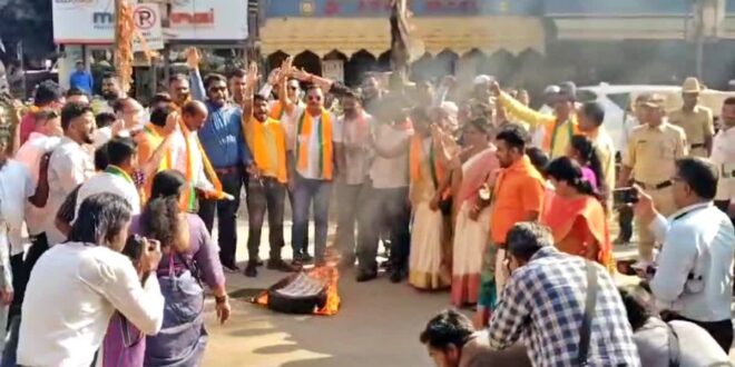ಮಹಿಳೆ ವಿವಸ್ತ್ರ ಪ್ರಕರಣ: ರಾಜ್ಯ ಸರ್ಕಾರದ ವಿರುದ್ದ ಪ್ರತಿಭಟನೆ ನಡೆಸಿದ ಬಿಜೆಪಿ; ಸಿಎಂ ಪ್ರತಿಕೃತಿ ದಹಿಸಿ ಆಕ್ರೋಶ