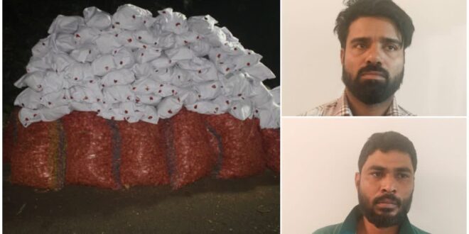 ಪುತ್ತೂರು(ದಕ್ಷಿಣ ಕನ್ನಡ): ಪುತ್ತೂರು ಗ್ರಾಮಾಂತರ ಪೊಲೀಸ್ ಠಾಣಾ ವ್ಯಾಪ್ತಿಯಲ್ಲಿ ನಡೆದ ಕಾರ್ಯಾಚರಣೆಯಲ್ಲಿ ಪೊಲೀಸರು 106 ಕೆ.ಜಿ ಗಾಂಜಾ ವಶಪಡಿಸಿಕೊಂಡು, ಇಬ್ಬರನ್ನು ಬಂಧಿಸಿದ್ದಾರೆ. ಬೆಳ್ತಂಗಡಿಯ ಚಾರ್ಮಾಡಿ ಗ್ರಾಮದ ನಿವಾಸಿಗಳಾದ ರಫೀಕ್ ಪಿ(37), ಅಬ್ದುಲ್ ಸಾದಿಕ್ (37) ಬಂಧಿತರು.