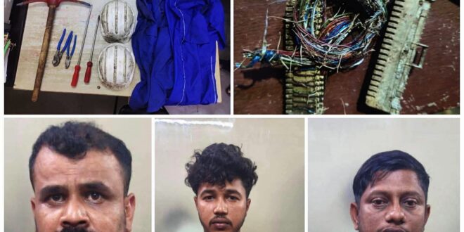 ವಿಮಾನದಲ್ಲಿ ಬಂದು ಕಾಪರ್ ವೈರ್ ಕಳ್ಳತನ ಮಾಡುತ್ತಿದ್ದ ಆರೋಪಿಗಳ ಬಂಧನ
