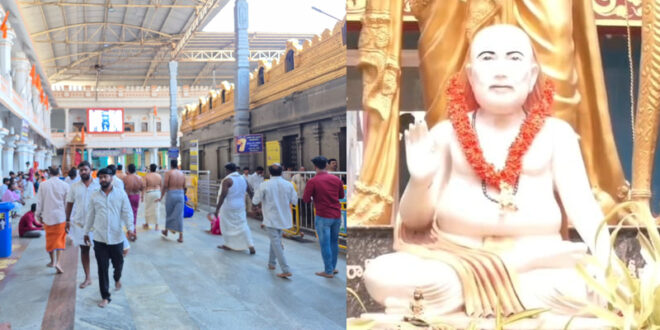 ರಾಯಚೂರು: ಕೇತುಗ್ರಸ್ಥ ಚಂದ್ರಗ್ರಹಣ ನಡುವೆಯೂ ಮಂತ್ರಾಲಯ ಗುರುರಾಘವೇಂದ್ರ ಸ್ವಾಮಿ ಮಠದಲ್ಲಿ ರಾಯರ ದರ್ಶನಕ್ಕೆ ಯಾವುದೇ ನಿರ್ಬಂಧವಿಲ್ಲ. ಎಂದಿನಂತೆ ಭಕ್ತರು ರಾಯರ ವೃಂದಾವನ ದರ್ಶನ ಪಡೆಯುತ್ತಿದ್ದಾರೆ.