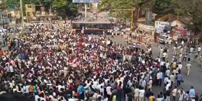 ಉದ್ಯೋಗ ಬೇಕು ಎಂದು ಭಿತ್ತಿಪತ್ರ ಹಿಡಿದು ಸಾವಿರಾರು ಯವಕರು ಆಗಮಿಸಿದರು. ಈ ವೇಳೆ ಪೊಲೀಸರು-ಪ್ರತಿಭಟನಾಕಾರರ ಮಧ್ಯೆ ತಳ್ಳಾಟ-ನೂಕಾಟ ನಡೆಯಿತು. ಪ್ರತಿಭಟನೆಗೆ ಅನುಮತಿ ನಿಡಲು ಪೊಲೀಸ್ (Police) ಇಲಾಖೆಯಿಂದ ಕಿರಿಕಿರಿಯಾಗಿತ್ತು. ಎರಡನೇ ಬಾರಿಯ ಬೃಹತ್ ಪ್ರತಿಭಟನೆಗೆ ಪೊಲೀಸರು ಅಡ್ಡಿಯಾಗುತ್ತಿದ್ದಾರೆ ಎಂದು ವಿದ್ಯಾರ್ಥಿಗಳು ಆಕ್ರೋಶ ವ್ಯಕ್ತಪಡಿಸಿದರು. ಇದೇ ವಿಚಾರವಾಗಿ ಉದ್ಯೋಗಾಕಾಂಕ್ಷಿಗಳು ಮತ್ತು ಪೊಲೀಸರ ನಡುವೆ ದೊಡ್ಡ ಮಾತಿನ ಚಕಮಕಿ ನಡೆಯಿತು.