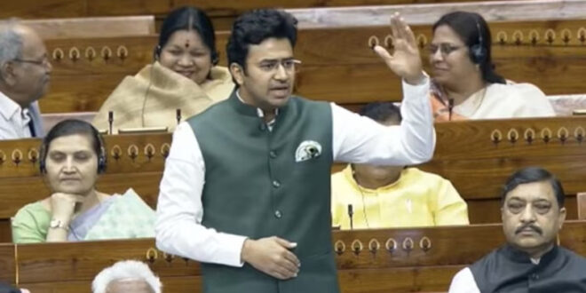 ಇನ್ನೂ ಕ್ಷೇತ್ರ ಪುನರ್ವಿಂಗಡಣೆ ಕುರಿತಾದ ಚರ್ಚೆ ವೇಳೆ ಮಾತನಾಡಿದ ಸಂಸದ ತೇಜಸ್ವಿ ಸೂರ್ಯ (Tejasvi Surya), ವಿಪಕ್ಷಗಳ ವಿರುದ್ಧ ಹರಿಹಾಯ್ದರು.